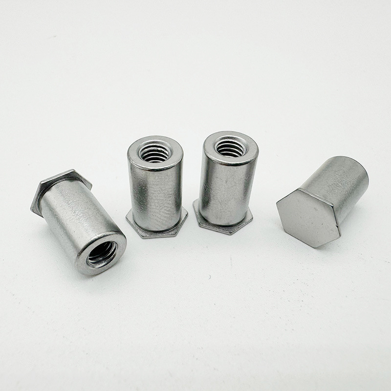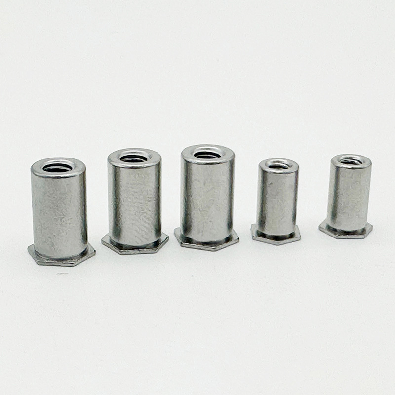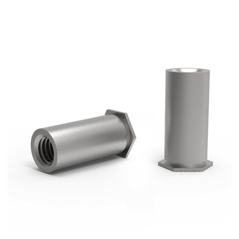 Kör delik düz kafa altıgen perçinlenmiş somun ince malzemeler için uygun bir bağlantı elemanıdır. Güçlü ve dayanıklıdır ve ipliğin giyilmesi kolay değildir. Kolay kurulum için altıgen bir şekle, yıkanan düz bir tezgah kafasına ve kapalı uçlu bir kör deliğe sahip bir fındık gövdesine sahiptir. Takarken, somun malzemeye kilitlemek için mekanik olarak (perçinleme gibi) deforme olur.