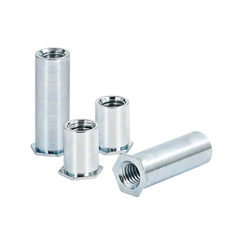 Karbon çelik altıgen perçin somunu sütununu takmak için bir perçin somunu aracı kullanırsınız. Altıgen gövde, önceden delinmiş bir deliğe koyduğunuzda dönmesini engeller. Araç mandrel kafasını çeker ve manşon kolonunu iş parçasının arkasına doğru eğir. Bu, sağlam, kalıcı dişli bir çapa noktası oluşturur. Delik boyutunu perçin somunu sütununun çapına eşleştirmek burada süper önemlidir, bunu yanlış anlayın ve doğru çalışmaz.