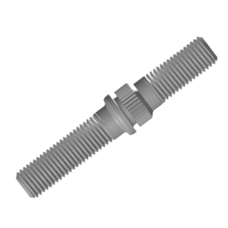 Bu tırtıllı çift uçlu bijon cıvatası, kritik olmayan otomotiv parçaları için kullanılan standart bağlantı elemanlarıdır. Karakteristikleri, cıvata başının altında uzanan uzunlamasına çıkıntılı bir nervürün (merkezi nervür) bulunmasıdır. Sıkıldığında çıkıntılı diş, birleşme yüzeyini hafifçe ısırır ve bu da titreşimden kaynaklanan gevşemenin önlenmesine yardımcı olur. Örneğin motor kaputları, braketler veya iç parçalar.