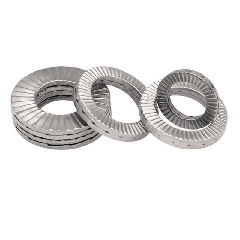 Çift oyunculuk çift uçlu kendi kendine kilitleme rondelaları tipik olarak karbon çelik, paslanmaz çelik (SS304/SS316 dahil) ve çeşitli senaryoların mekanik performans gereksinimlerini karşılamak için alaşım çelikten yapılmıştır. Çinko kaplama, sarı çinko kaplama ve genel korozyona dirençli yüzey işlem seçenekleri sunarak, özel çalışma ortamınıza (nem, aşındırıcı ortam ve sıcaklık gibi) uyarlanmış özelleştirilmiş çözeltilere izin veriyoruz.