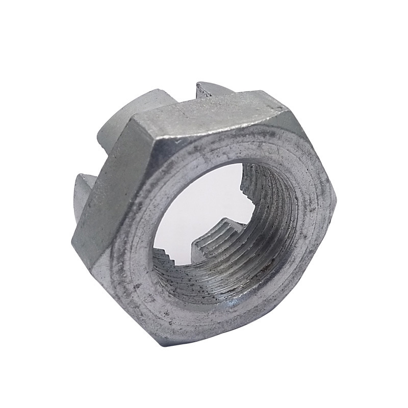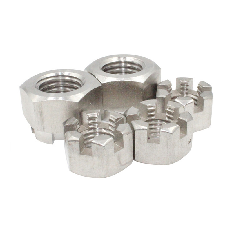 Dome kısmı, eşit olarak dağıtılan ve doğrudan somunun ekseni boyunca uzanan birkaç yuvaya (genellikle altı) sahiptir. Bu yuvalar tam olarak işlenir ve standart açık pimleri mükemmel bir şekilde eşleştirebilir. Bu oluklu yuvarlak kafa somunun tasarımı hem pratik hem de güvenlik odaklıdır: somunu sıktıktan sonra, yerinde sabitlenebilir, böylece titreşim veya diğer kuvvetler nedeniyle cıvatadan düşmesini önler.
