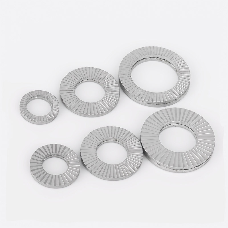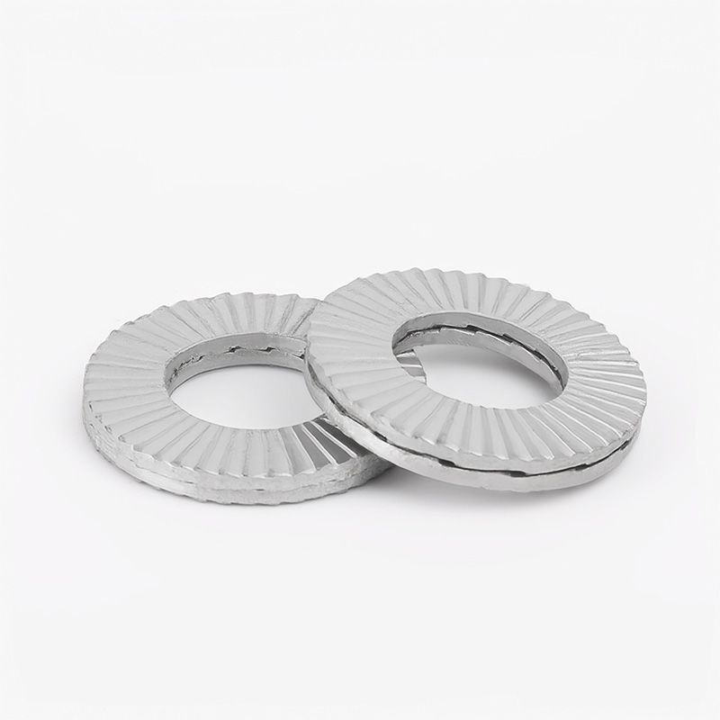 Arıza Güvenli İki kat kendi kendine kilitleme yıkayıcıları tipik olarak yüksek karbonlu çelikten (SAE 1070 veya 1095 gibi) veya alaşım çelikten yapılır. Bu malzemeler, rondelalara uygun çalışma için gerekli elastik özellikleri sağlarken, aynı zamanda çok çeşitli çalışma koşullarında güvenilir çalışma için gereken yüksek gerilme mukavemetini sağlar. Spring Steel'in doğal geri dönme yeteneği, sekmelerin konulduğunda çok bükülmesini sağlayarak dönmeye direnen önemli kilitleme kuvvetini yaratır. İçlerindeki karbon çeliği yeterince sertleştirir, böylece küçük sırtlar gerçekten yüzeylere girebilir. Çelik başarısızlık Güvenli İki kat kendini kilitleme yıkayıcıları düzenli kullanım ve çok fazla stresin olduğu durumlar için yeterince güçlüdür.