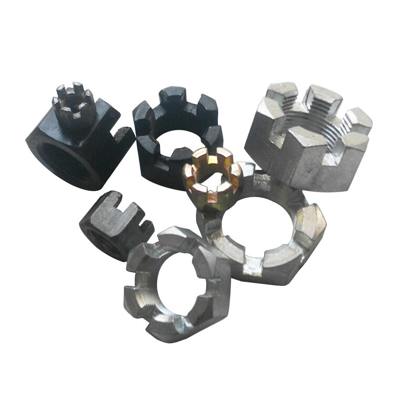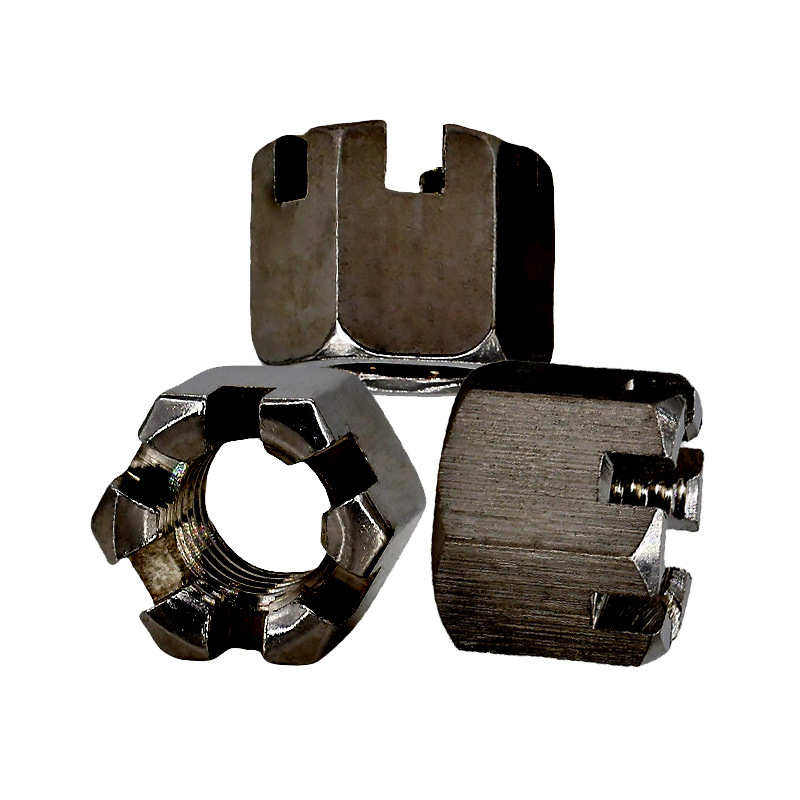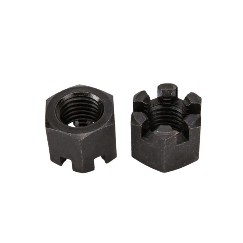 Yuvalı hassas işlenmiş taç somunu genellikle güçlü karbon çelik veya alaşım çelikten yapılır-Sınıf 5, Sınıf 8 veya AISI 4140 gibi. Bu özellik onlara mükemmel bir tokluk sağlar ve ayrıca gerilme mukavemeti, akma mukavemeti ve kesme mukavemetinin üç temel mekanik özelliğinde iyi performans gösterirler. Güçlü çelikten yapılmış olmak, bu fındıkların bükülmeden veya kırılmadan kullanımdan çok fazla sıkıştırma kuvveti ve stresle başa çıkabileceği anlamına gelir. Bu nedenle, yapısal çerçeveler, aktarma organları ve süspansiyon parçaları gibi zorlu yerlerde ağır yük işleri için iyi çalışıyorlar.
