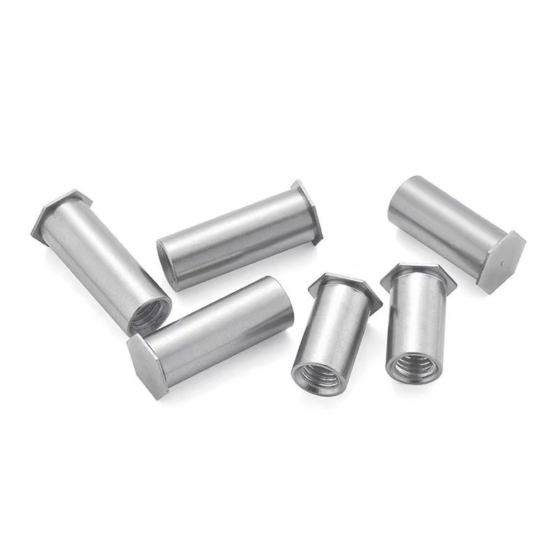 Kendi kendini körükleyen kör dişli duruşları kurmak için bir perçinleme aracına ihtiyacınız olacak. İlk olarak, malzemeye bir delik açın, sonra somunun sapını deliğe yapıştırın. Araç, somunun içinden bir mandrel çeker, bu da sapı malzemenin arka tarafında şişirir. Bu kalıcı, titreşim geçirmez dişli bir bağlantı elemanı oluşturur. Sadece somun boyutuna uygun standart pnömatik veya hidrolik perçin somunu kullanın, oldukça basit.
