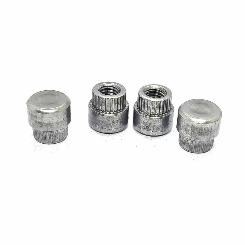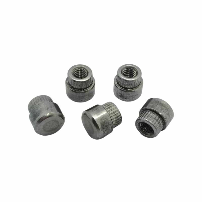 Bu kendi kendine çırpıcı yuvarlak perçin çalı kalıcı, titreşime dayanıklı sabitleme için yapılır. İşte böyle çalışır: Alttaki genişletilmiş kısmı önceden delinmiş bir deliğe yapıştırırsınız. Genellikle bir perçin tabancası veya bir presle taktığınızda, bu parça arka tarafta (göremediğiniz taraf) deforme olur ve katı bir mekanik kilit oluşturur. Aynı zamanda, somun üzerindeki flanş ve knurling yüzeyi kavrar ve sıkıldığınızda basıncı yayar.