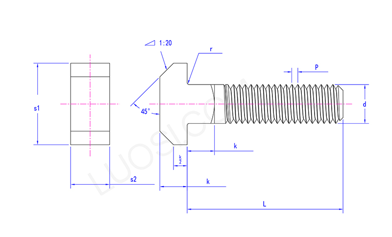 Tıpkı "T" harfi gibi yatay olarak yerleştirilmiş bir "T" şeklidir. Bu geniş T şeklindeki kafa, cıvatanın ekipmanın T şeklinde oluğuna sıkışmasını sağlar ve cıvatanın çıkarılmasını önlemede rol oynar.