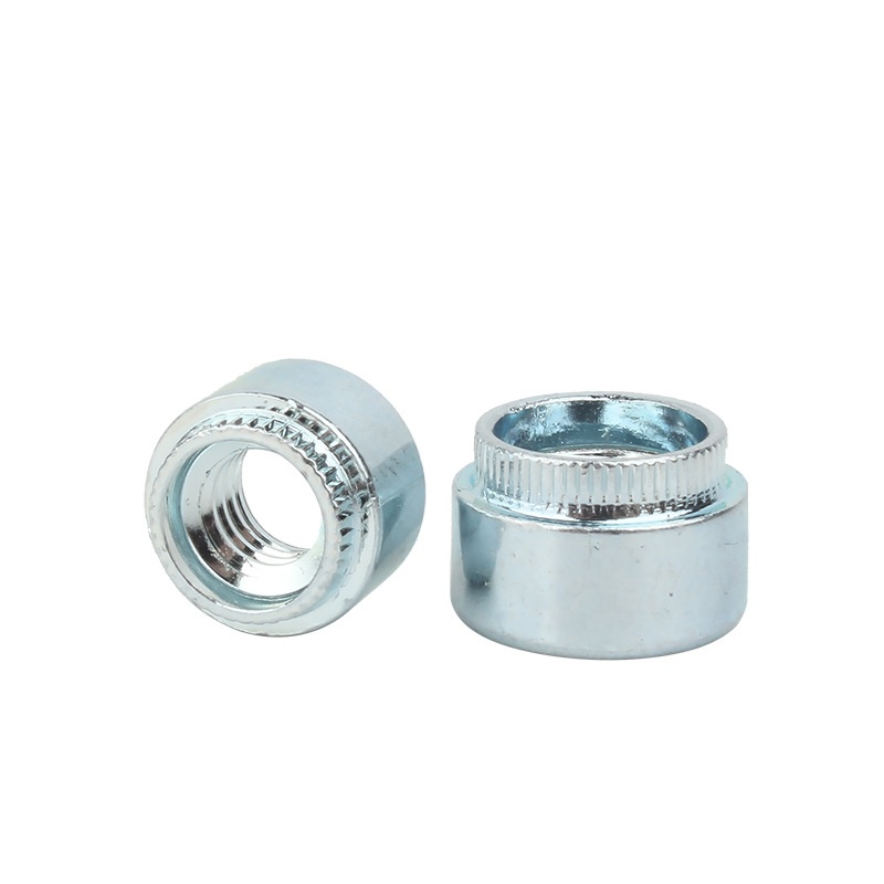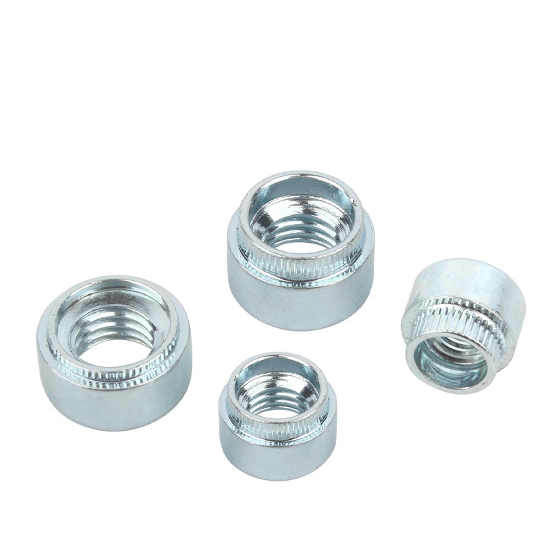 Paslanmaz çelik yuvarlak kendi kendine çırpıcı somun bir tür kör bağlantı elemanıdır. Esas olarak iş parçasının yalnızca bir tarafına erişebildiğinizde kalıcı, yüksek mukavemetli dişli bağlantılar için kullanılır. Anahtar kısım bölünmüş kollu gövdesidir - taktığınızda, bu kol dışa doğru genişler.