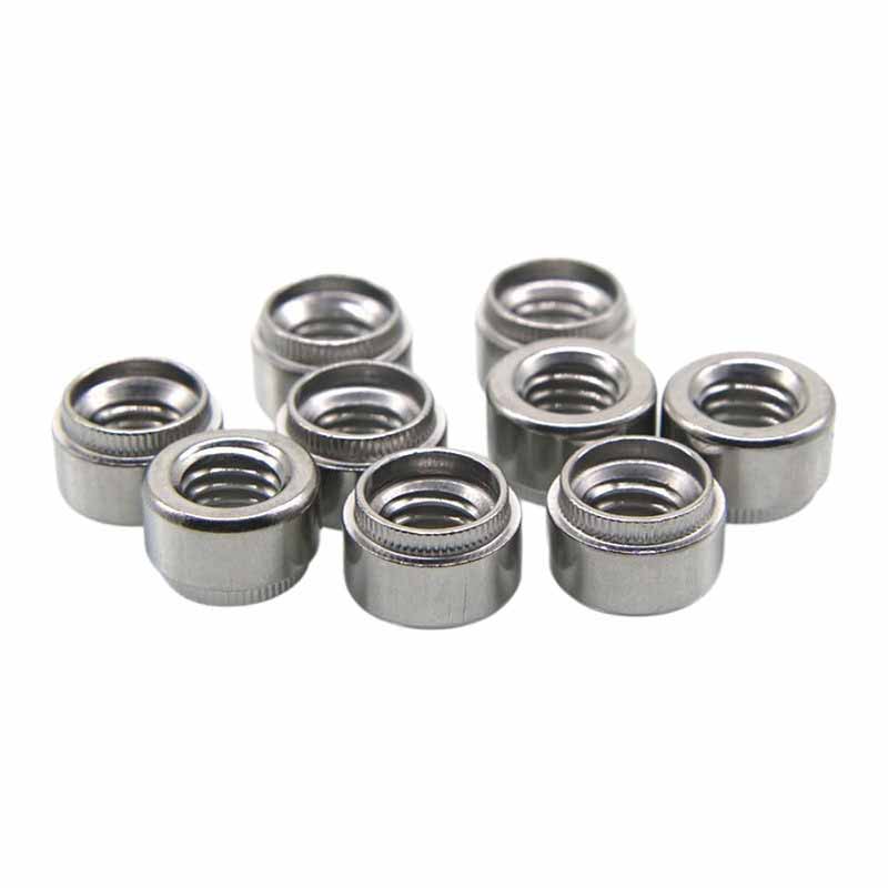 Bu paslanmaz çelik kendinden perçinli yuvarlak perçin burcu kalıcı, titreşime dayanıklı sabitleme için yapılmıştır. İşleyişi şu şekildedir: Alttaki genişletilmiş parçayı önceden delinmiş bir deliğe yapıştırırsınız. Genellikle perçin tabancasıyla veya presle taktığınızda, bu parça arka tarafta (göremediğiniz taraf) deforme olur ve dışarı doğru çıkıntı yaparak sağlam bir mekanik kilit oluşturur. Aynı zamanda somunun üzerindeki flanş ve tırtık yüzeyi kavrayarak, sıktığınızda basıncı yayar.