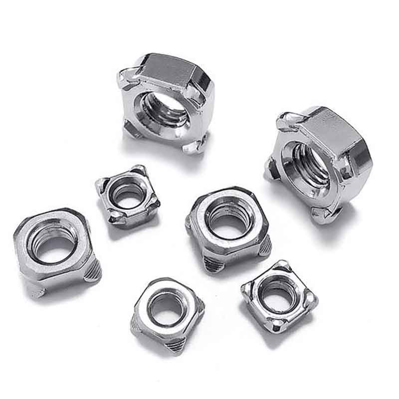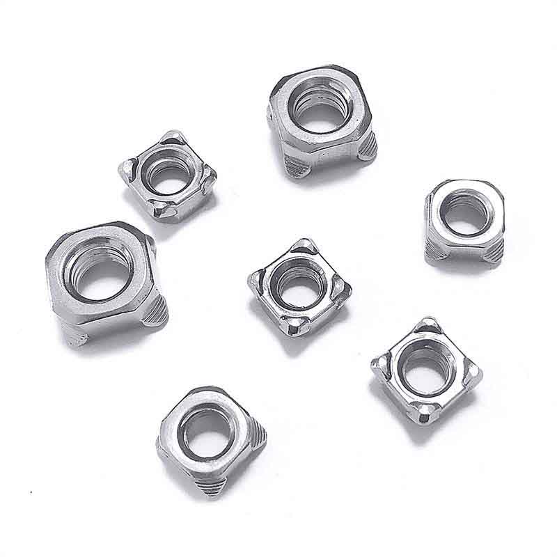 B tipi kare kaynaklı somunlardelik veya basit köşeleri yok; bunun yerine her köşede ayrı çıkıntılar var. Bu önemli bir özelliktir. Bu çıkıntılara doğrudan kaynak yapabilirsiniz. Bu tasarım genellikle daha düzgün bir kaynak çekirdeği sağlar çünkü çıkıntılar eriyecek ve alttaki metal plaka ile kaynaşacaktır. Bu, özellikle otomotiv endüstrisinde yaygın bir spesifikasyondur.